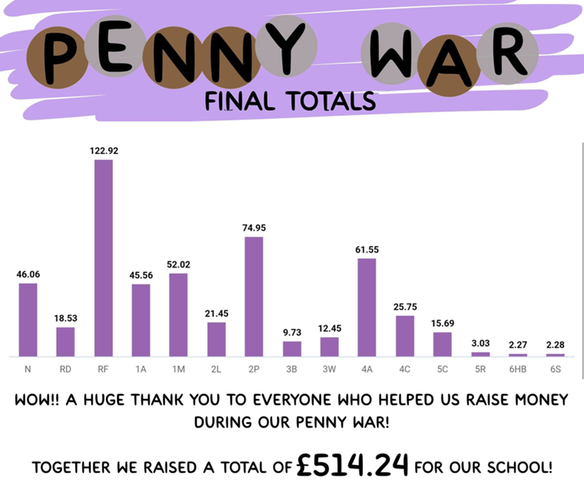 July marked the end of our annual Penny Wars fundraiser, and we’re thrilled to share that we raised an impressive £514.24 in just a few short weeks—all from spare change generously donated by our amazing parents and students!
